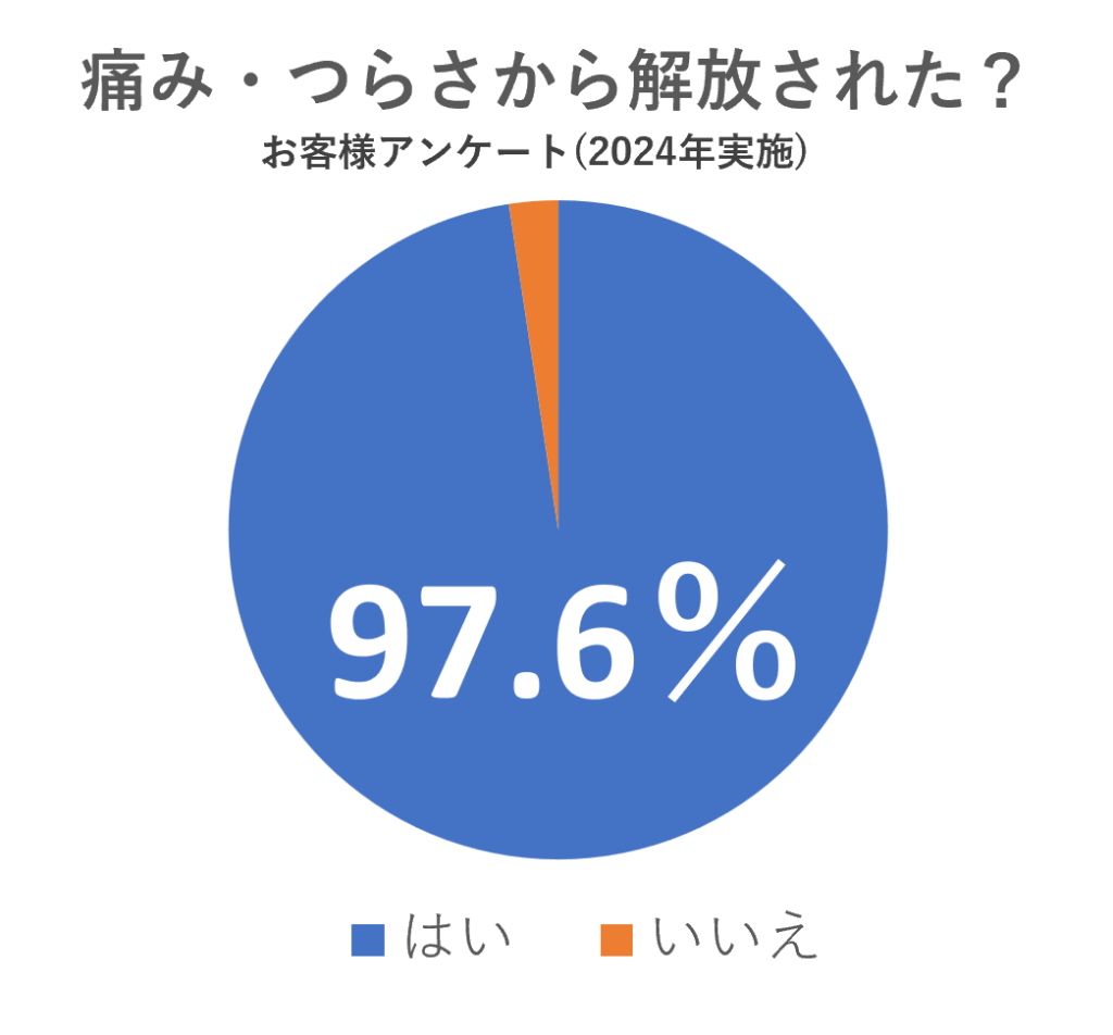 当院では、痛み・つらさを長年抱えたお客様からご相談をいただくことが多くあります。どのような治療やマッサージをしても慢性化した痛みが取れない、そんな「あきらめ」にも似た絶望感をどうにかしたい!という院長の強い思いから、表面的な治療ではなく根本的な改善をお客様とともに歩みながら施術していきます。